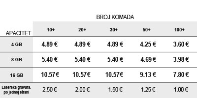 Cenovnik USB memorije sa brendiranjem